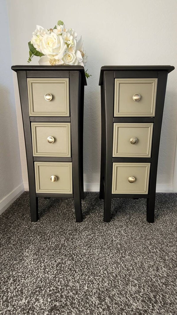 A pair of upcycled bedside / small drawers.