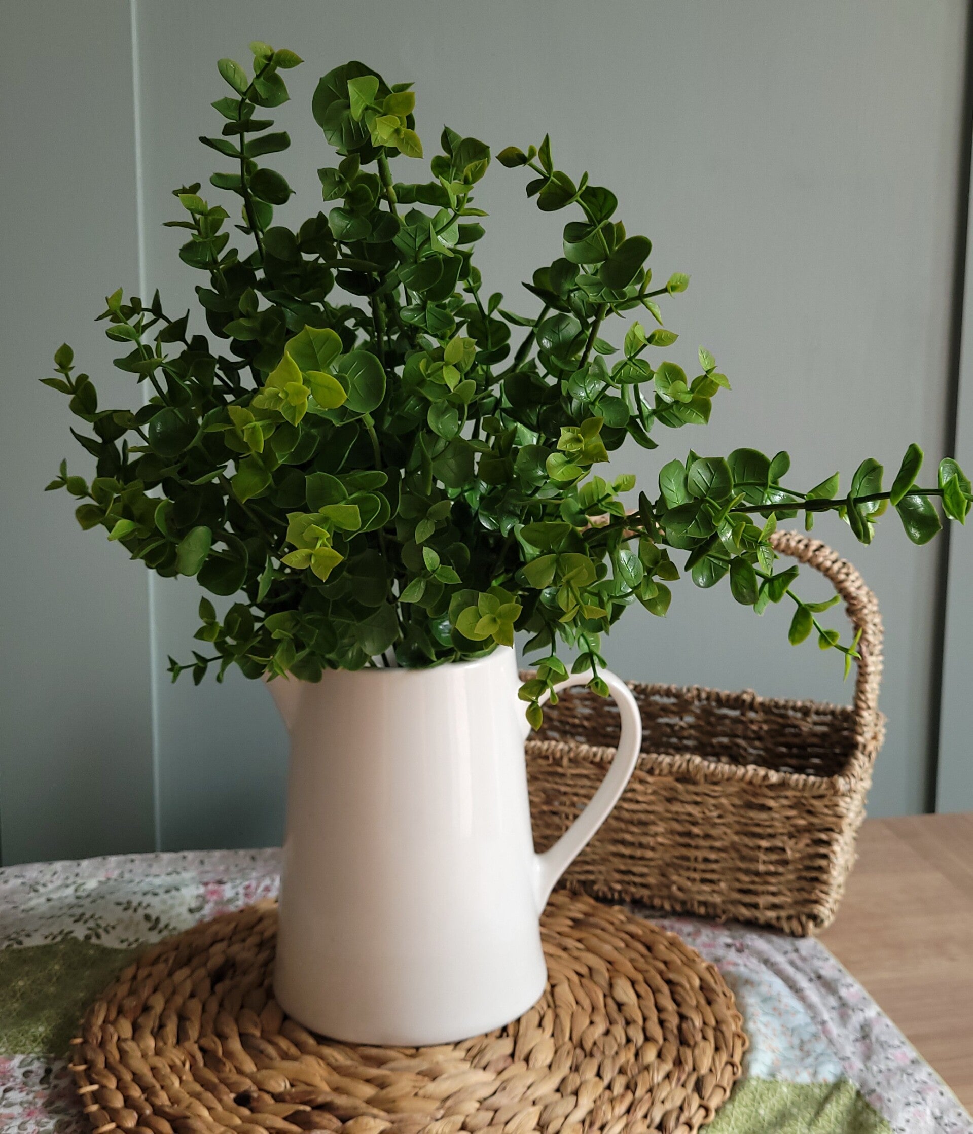 This artificial eucalyptus bush is an excellent addition to your floral arrangements or table centrepieces.
